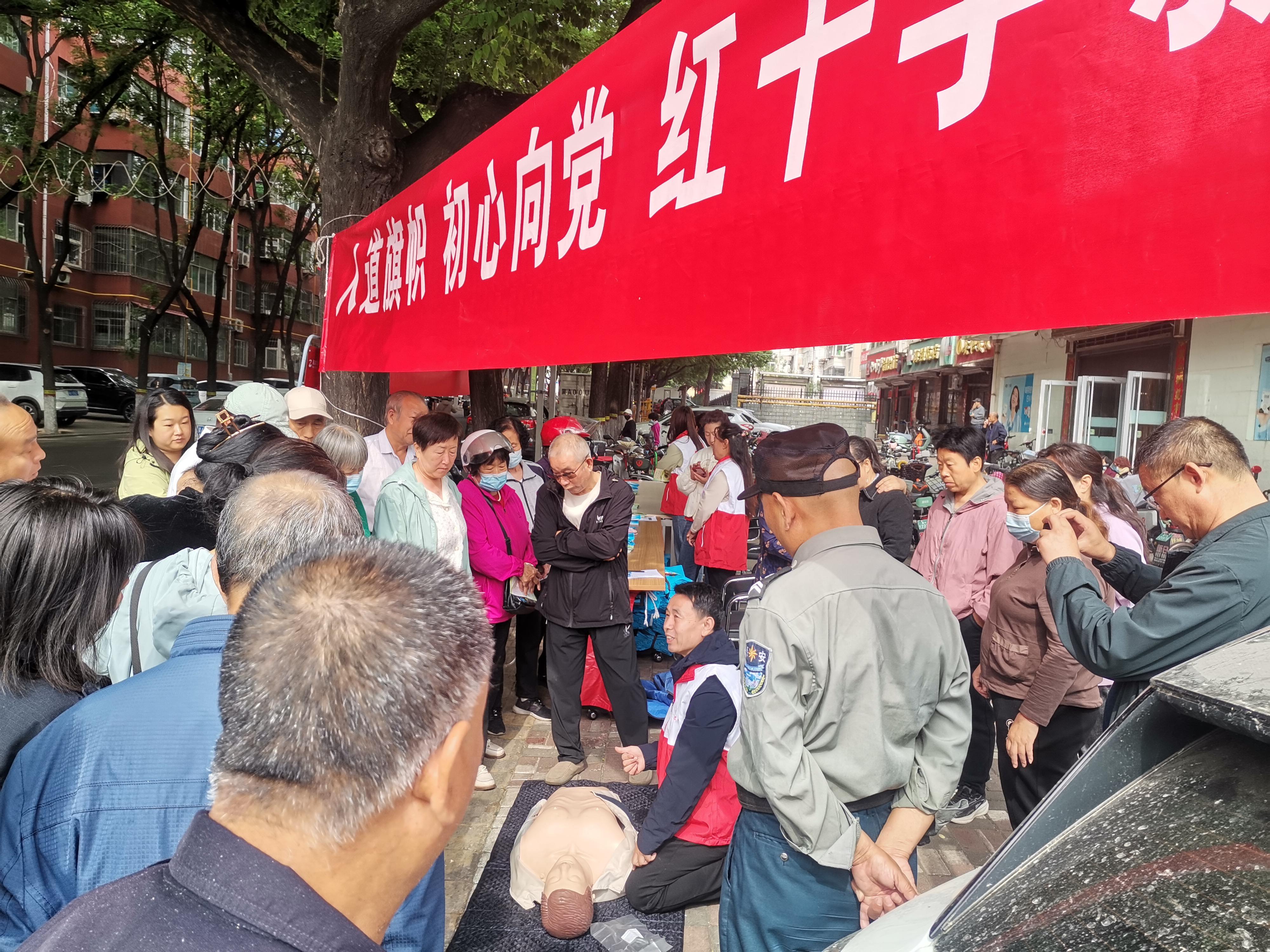 活动中,区红十字会分别在张家口银行门前、人民广场设立应急救护小讲堂、发放宣传资料等多种形式,向群众普及红十字职责、“三救三献”知识、应急救护技能等,现场还邀请踊跃参加的群众用模拟人进行心肺复苏操作,红十字会志愿者手把手、一对一进行指导,旨在让大家亲身参与,掌握急救技能,以此带动更多社会力量了解红十字知识、参与红十字事业。