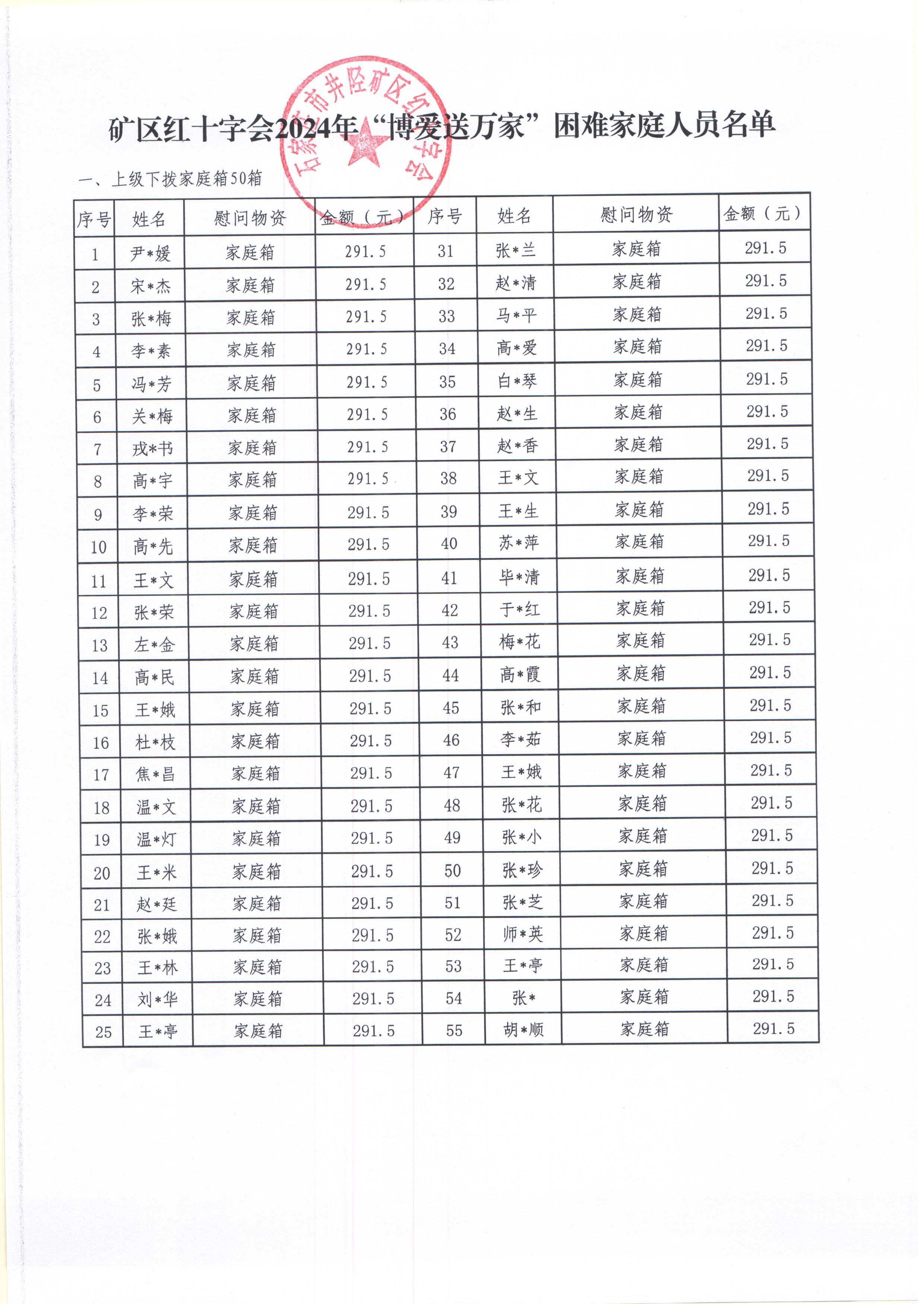井陉矿区红十字会2024年“博爱送万家”慰问人员名单